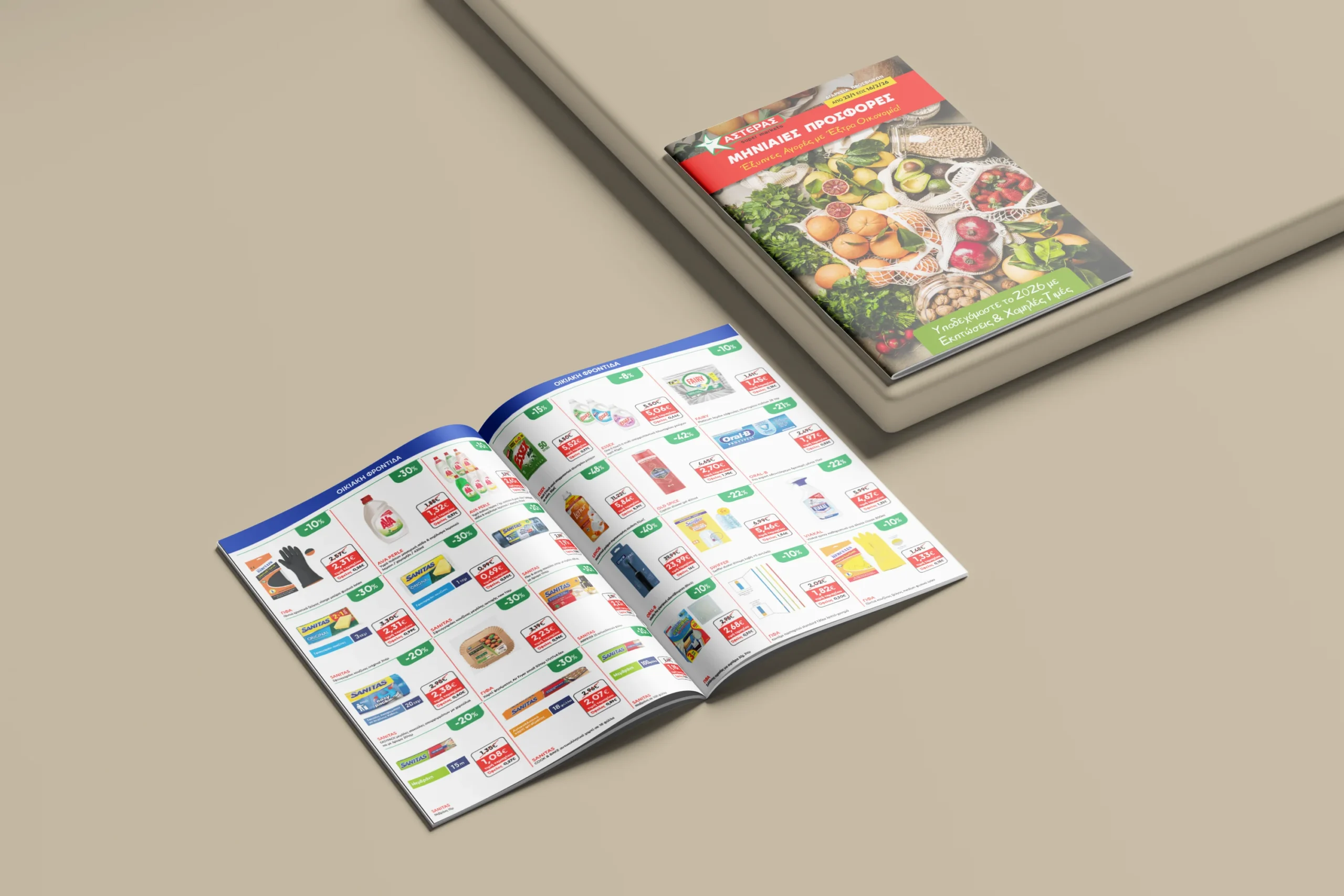 In close collaboration with Helen Phillips Marketing Agency, we undertook the complete design and art direction of the renewed monthly issue for Asteras Group. The publication highlights the offers and products of the partner supermarkets, serving as a modern communication tool for the network’s members.